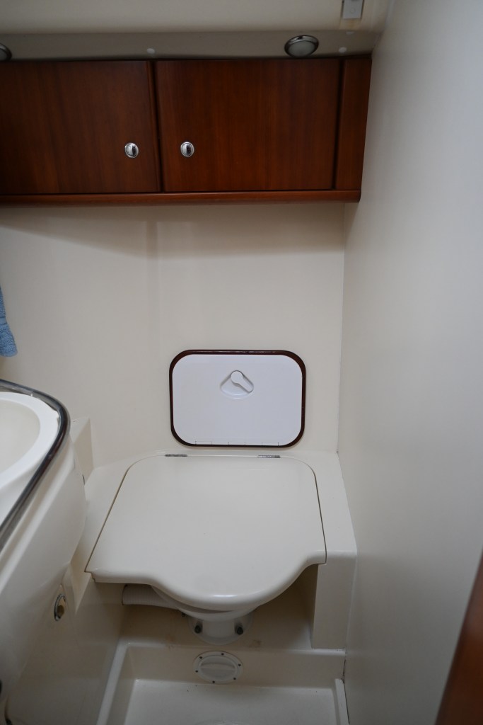 - Port side, inside facing manual Jabsco marine toilet (new 2019)