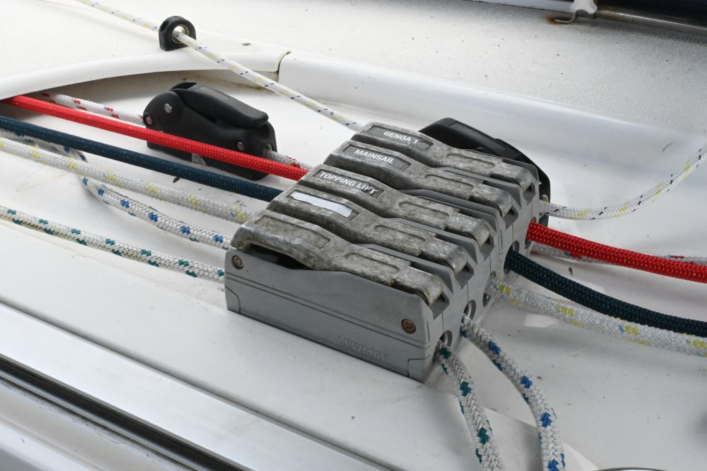 Lewmar 30 coachroof mounted winches, individual clutches for control of all halyards, kicker and mainsail reefing lines. Coaming mounted Lewmar 48ST winches for genoa and cruising chute sheets (2 speed self tailing) and a Lewmar 8 winch for genoa furling line (single speed); winches serviced annually.