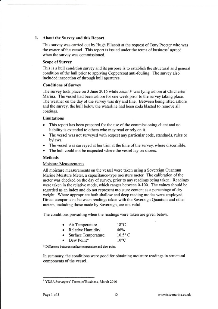 This hull survey was conducted in 2016 prior to the re application of Coppercoat antifouling after the hull had been soda blasted to remove the original Coppercoat (coated 2000) which was showing signs of flaking